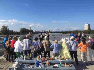 Um 14 Uhr treffen sich auf der Passerelle Bewegungsfreudige mit ihren Fahrrädern zu einer einstündigen Radrundfahrt auf der Plattform der Passerelle.