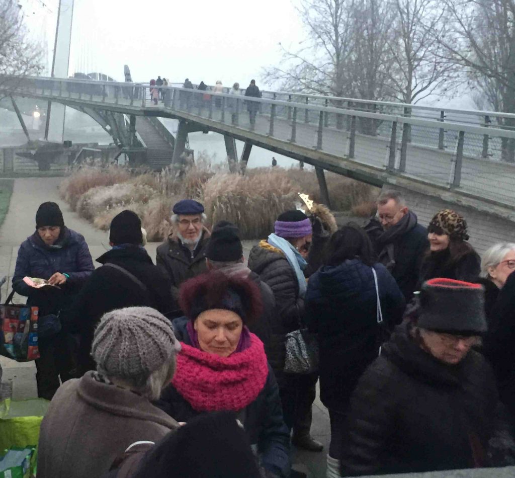 Une vingtaine de personnes ont fêté l’an neuf au pied d’une passerelle verglacée par endroit.